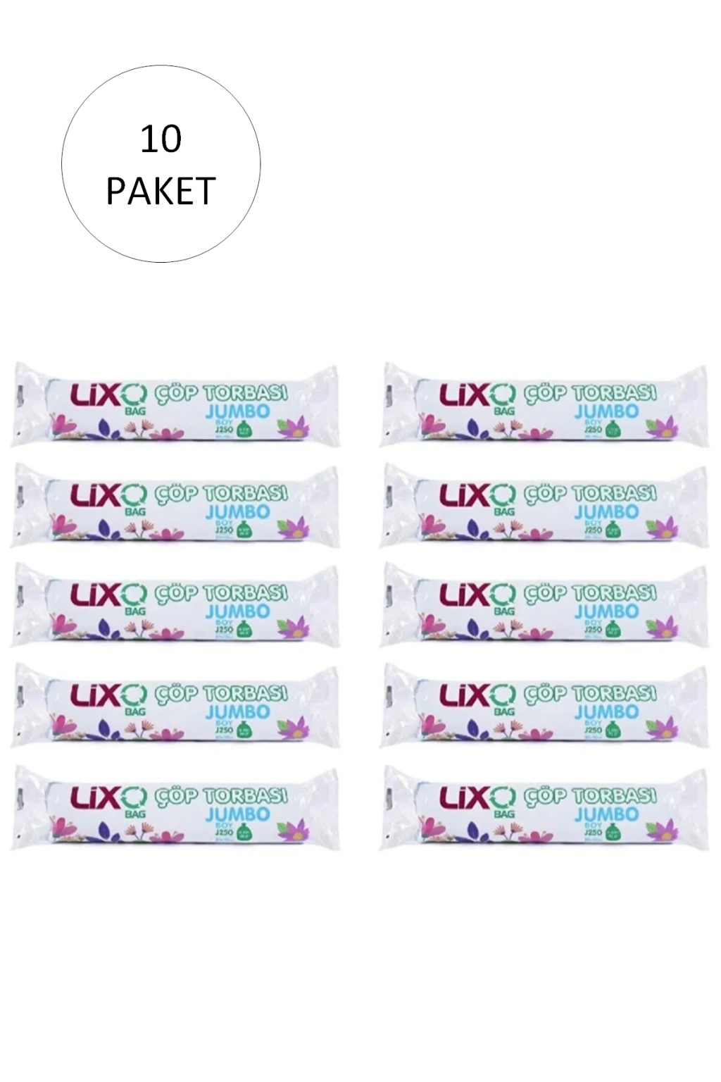 J-250 Jumbo Boy Çöp Torbası 80 x 110 cm 10 Lu Rulo x 50 Paket = 500 Adet (Siyah)