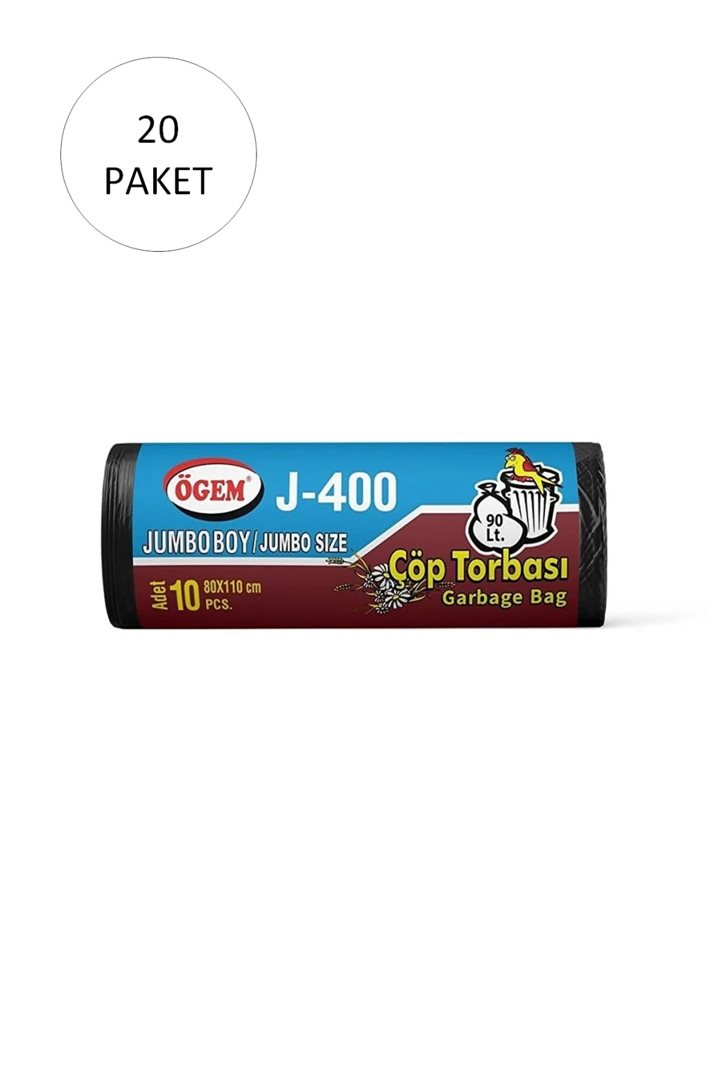 J-400 Jumbo Boy Çöp Torbası 80 x 110 cm 10 Lu Rulo x 20 Paket = 200 Adet (Siyah)