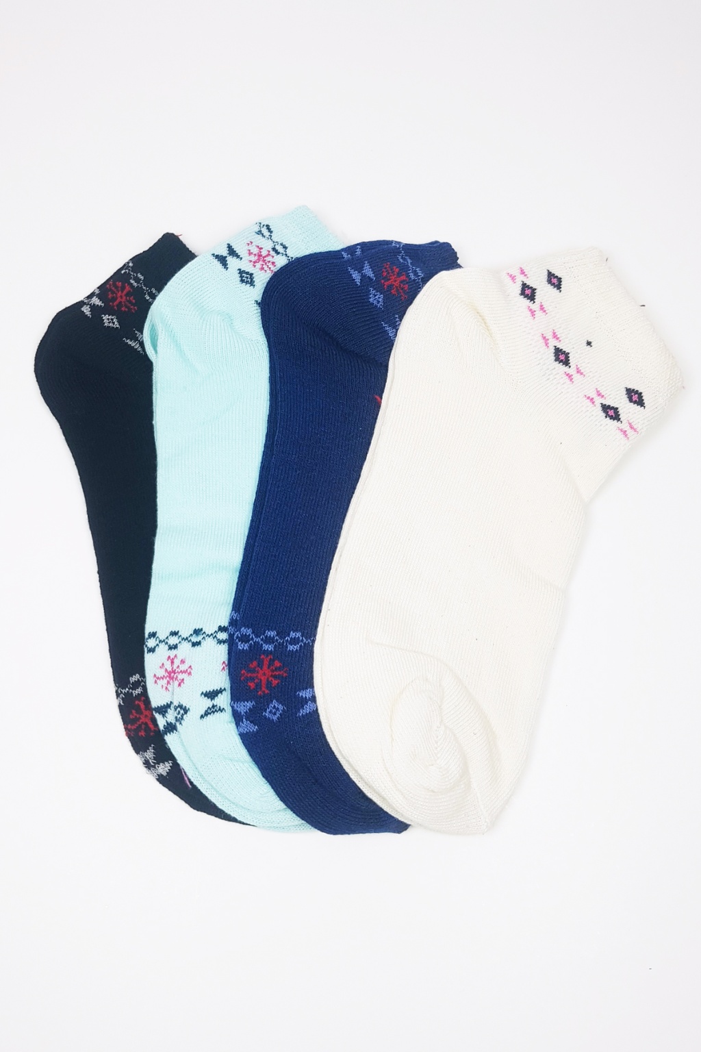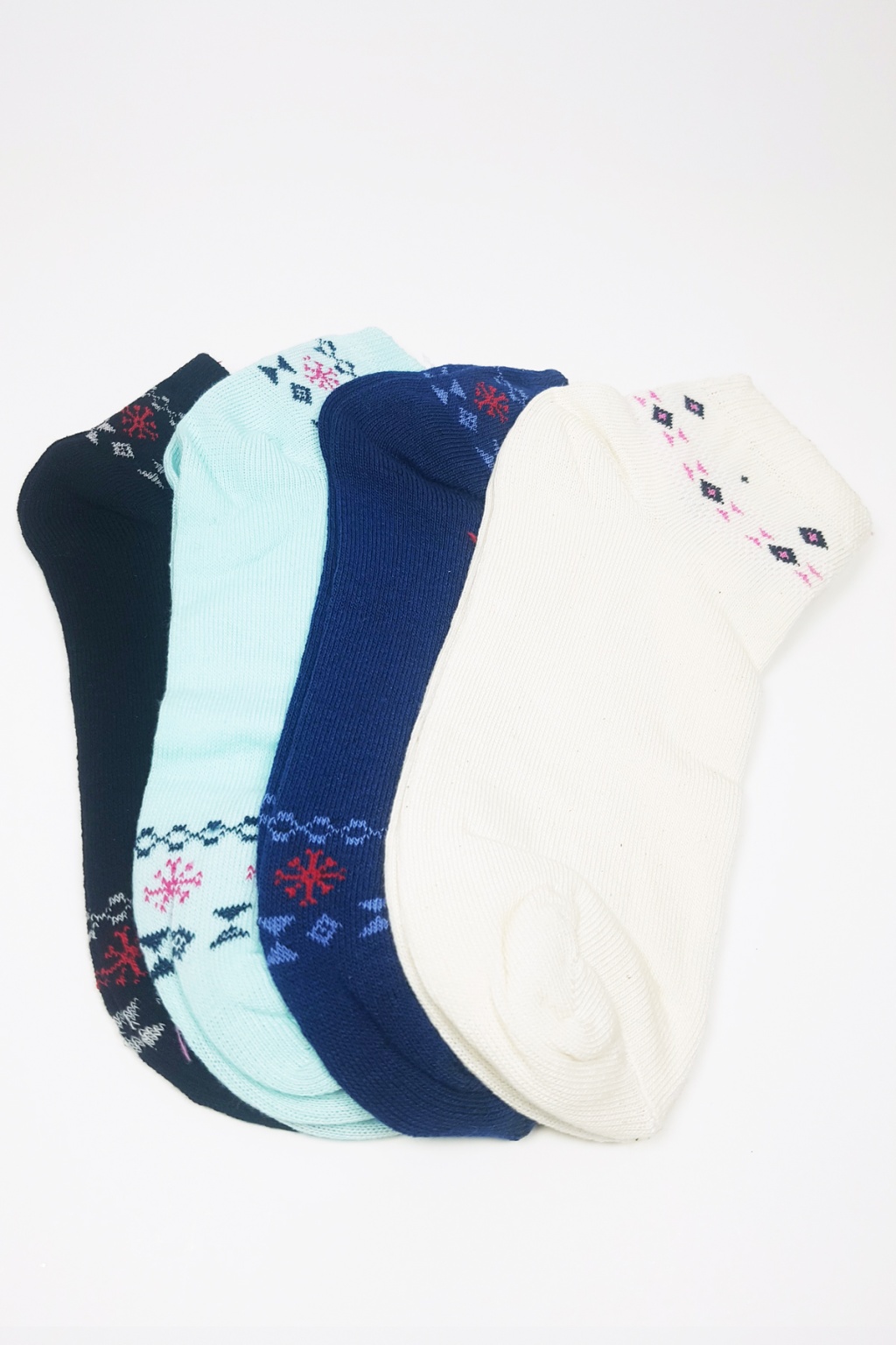 4 Çift Canlı Renk ve Desenli Pamuklu Kadın Bilek Çorap