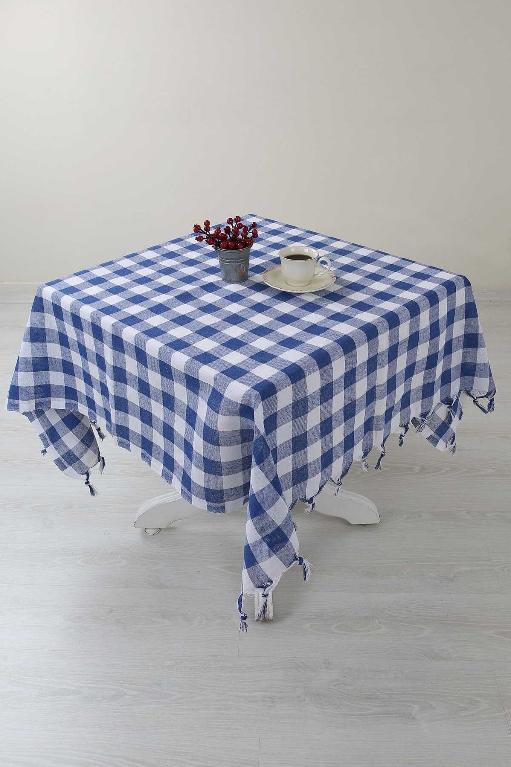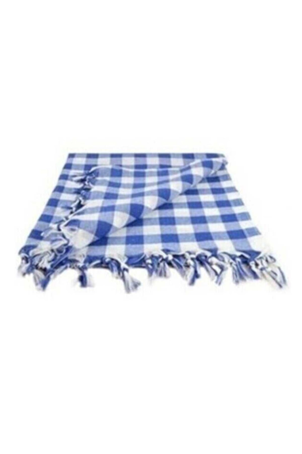 Kareli Saçaklı Mavi Masa/piknik/sofra Örtüsü 165x170 Cm