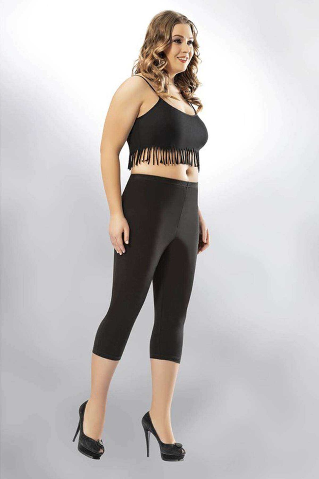 Kota Büyük Beden Kadın Kapri Sporcu Likralı Düz Tayt Siyah