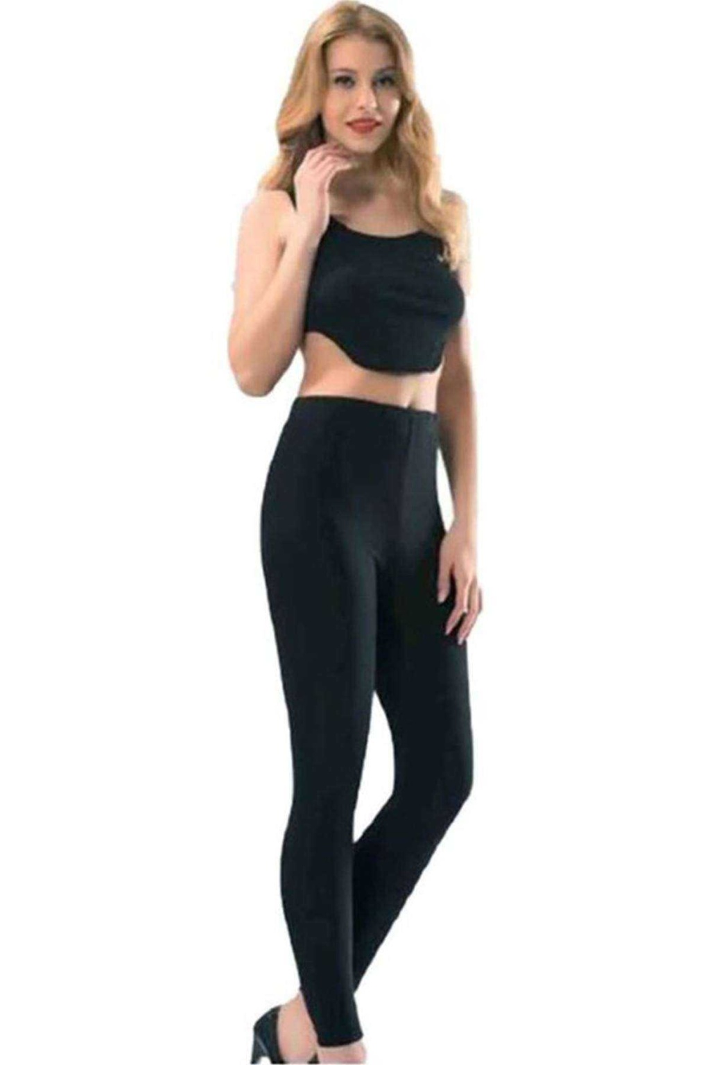 Kadın Uzun Paça Katlamalı Sporcu Düz Tayt Siyah