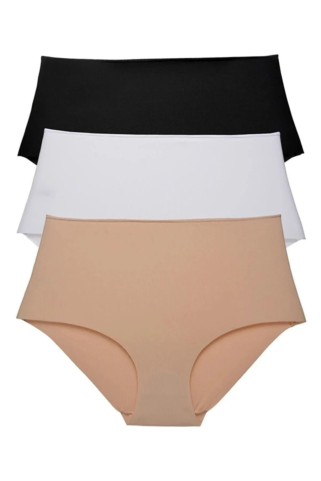 Lazer Kesim Toparlayıcı Dikişsiz Beli Lastikli Bato Külot Yüksek Bel 3 Adet