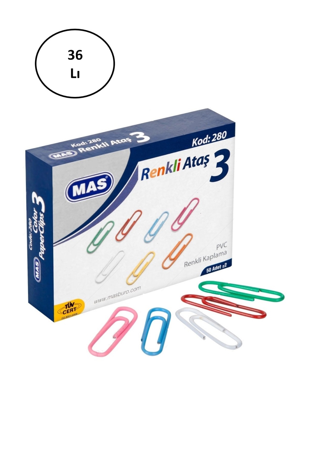 Mas 280 Renkli Ataş Pvc Kaplı 28 Mm 36'lı