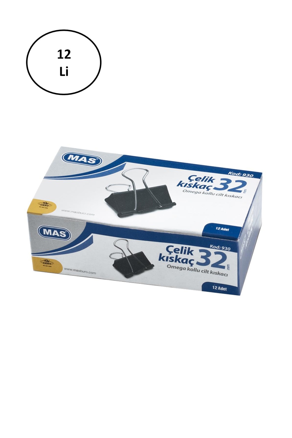 Mas Omega Çelik Kıskaç Siyah 32 mm 12'li