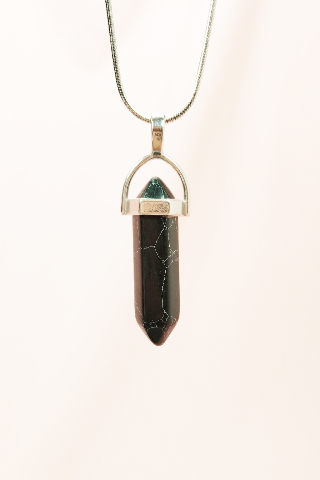 Obsidyen Doğal Taşı Zincirli El Yapımı Tasarımlı Kolye Uç: 3,5 cm Zincir: 20 cm Kutulu