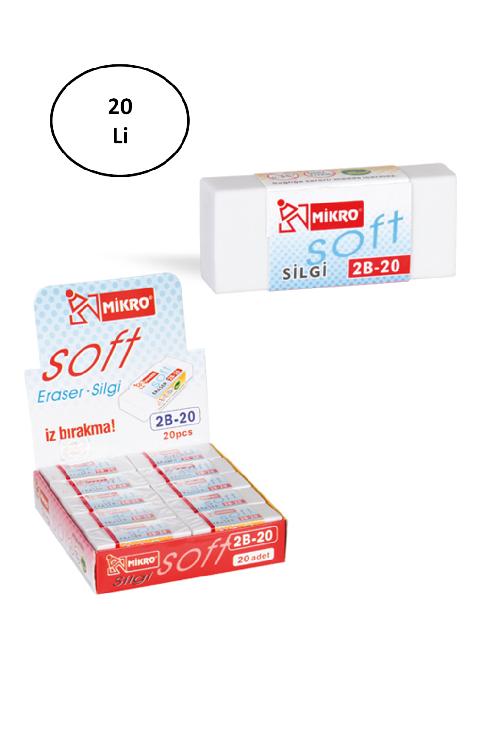 Mikro 2b-20 Beyaz Nano Silgi 20'li