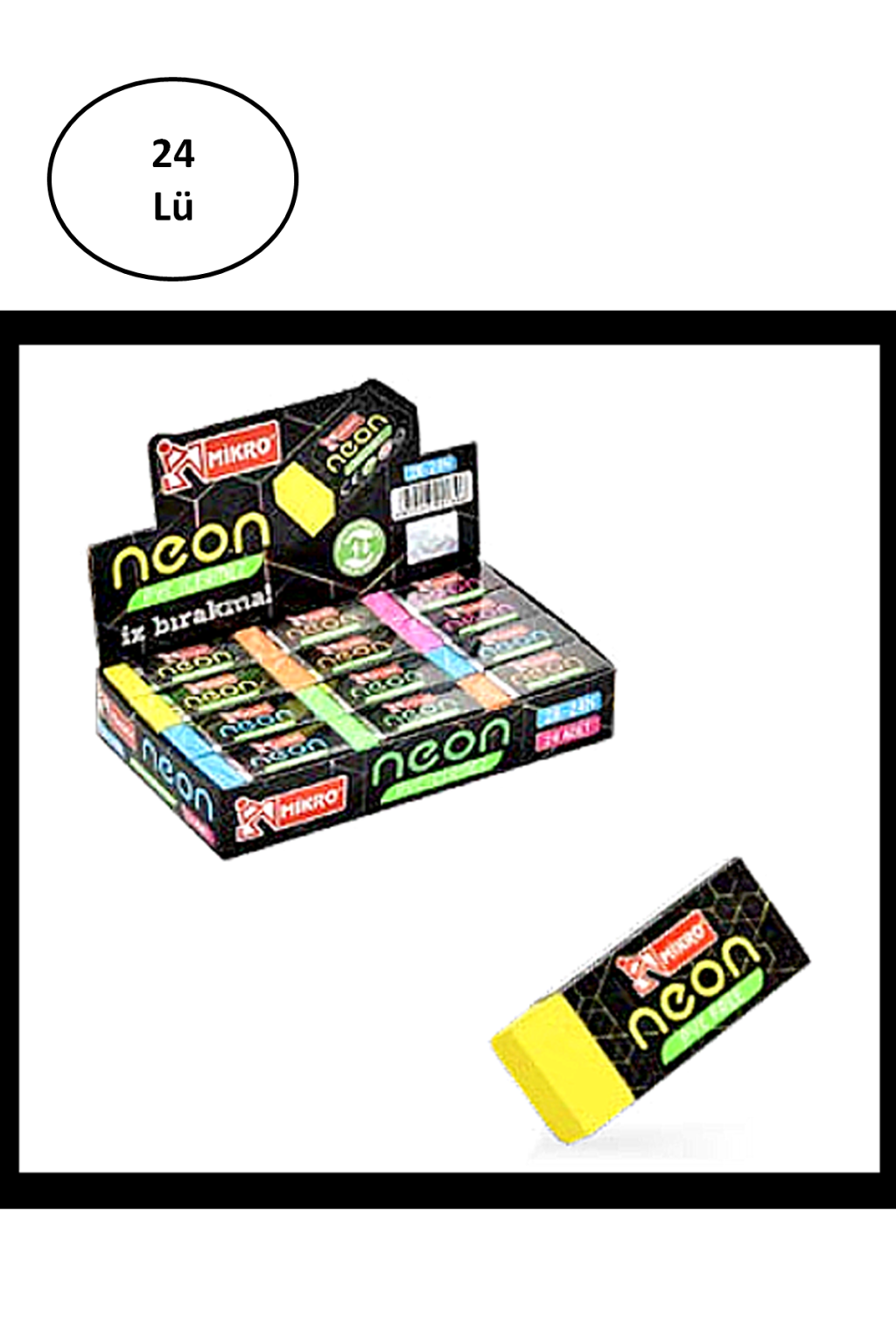 Mikro 2B-24N Neon Soft Silgi 24'lü Paket