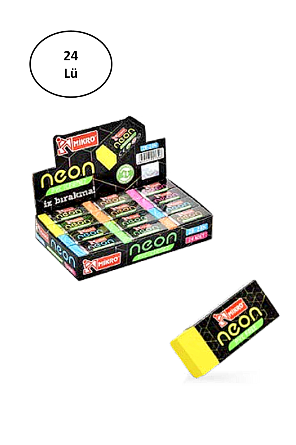Mikro 2B-24N Neon Soft Silgi 24'lü Paket