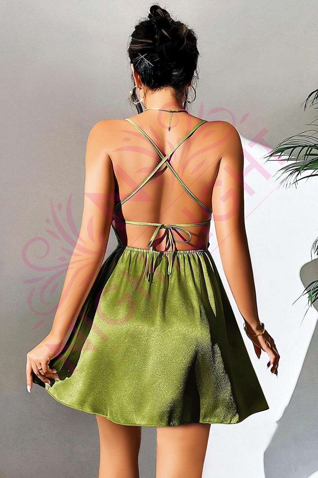 Night Light Kadın Derin Sırt Dekolteli Fantazi Yeşil Mini Gecelik 3654-2