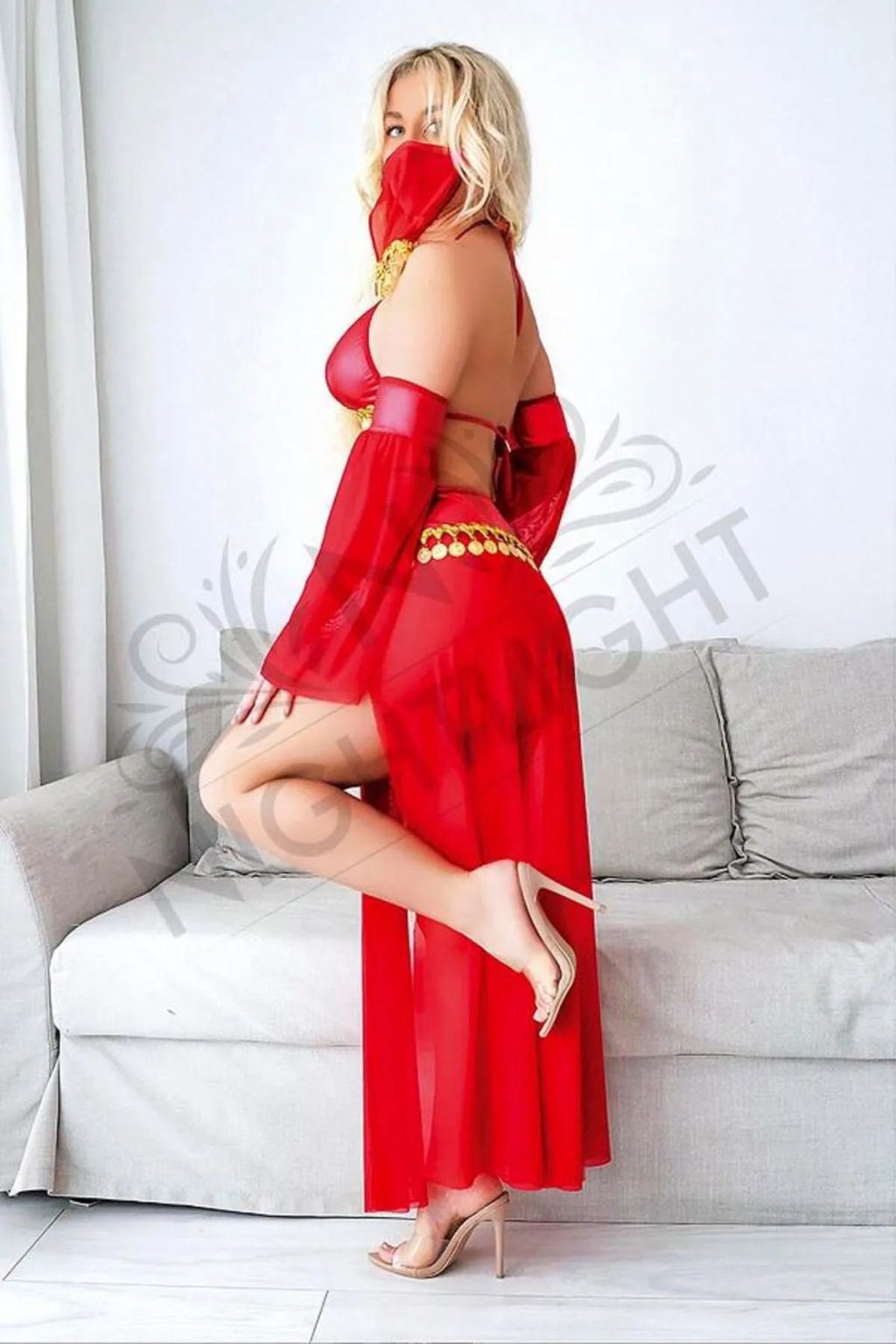 Night Light Kadın Peçeli Altın Detaylı Fantazi Kırmızı Dansöz Kostümü 1086