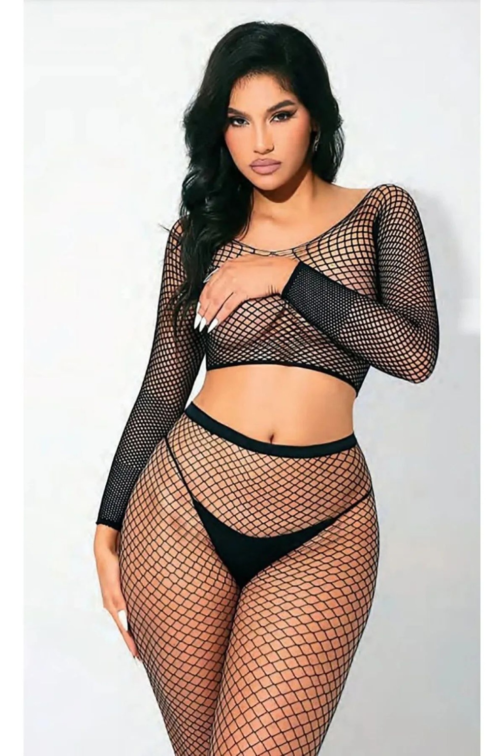 Night Light Kadın Siyah Fantezi Çamaşır File Vücut Çorabı 5567