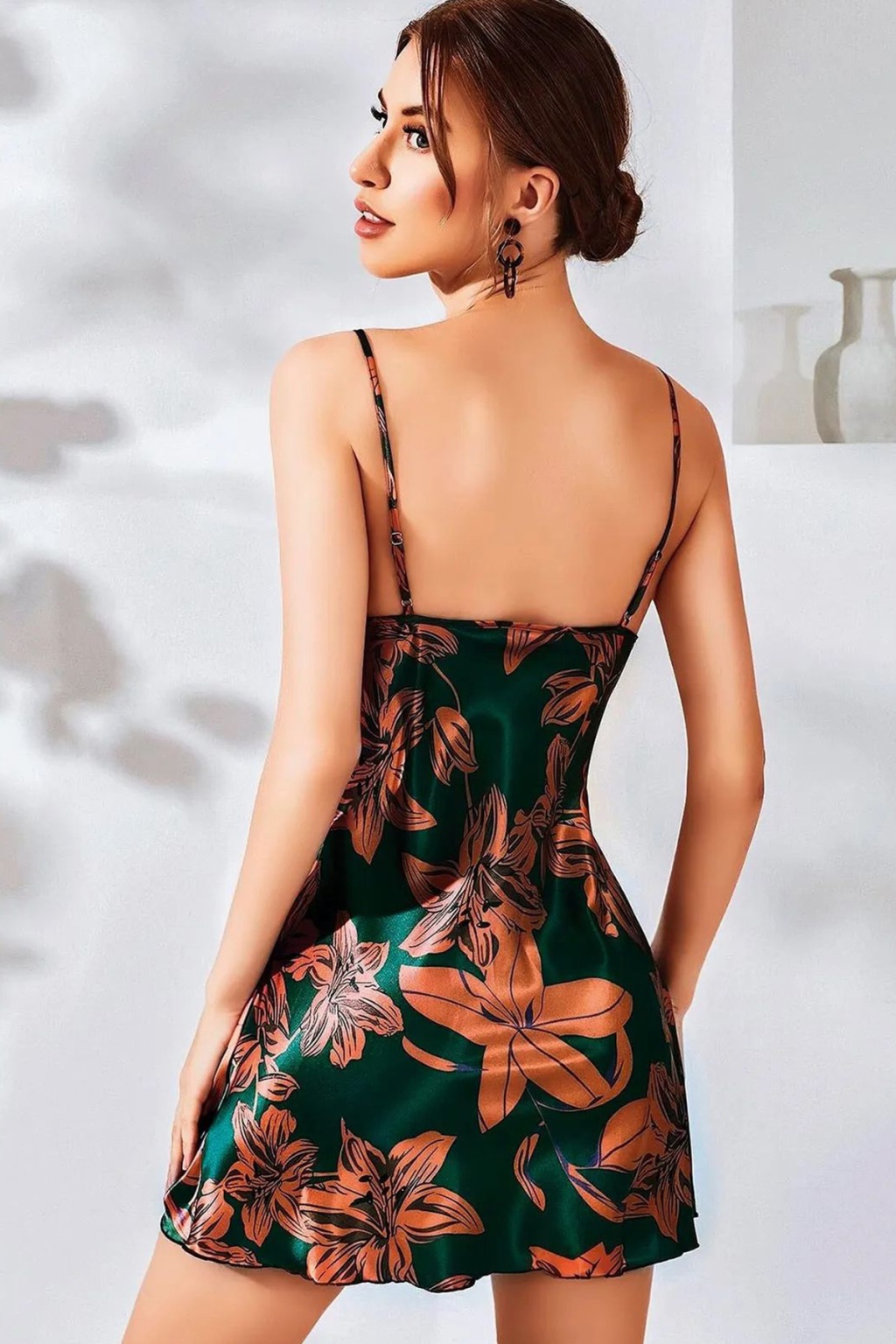 Night Light Kadın Yeşil Desenli Saten Mini Gecelik 3652