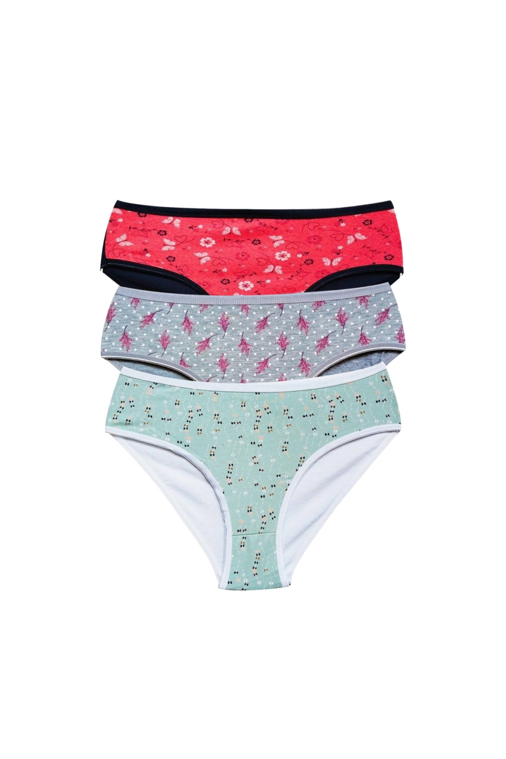 Pamuklu Geniş Kenarlı Likralı Desenli Bato Kadın Külot 3'lü Paket Set1