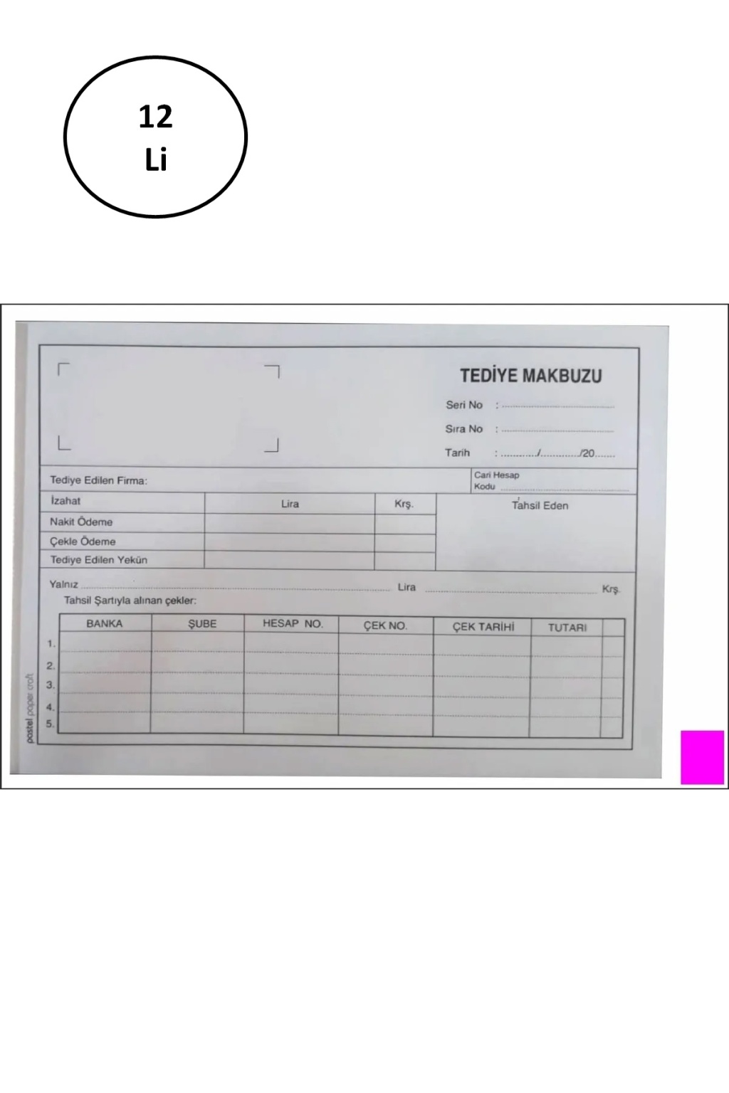Pastel Tediye Makbuzu 14x20 Cm Boyutunda A5 Otokopili 2 Nüsha 50 Asıl 50 Suret 2/50 12'li