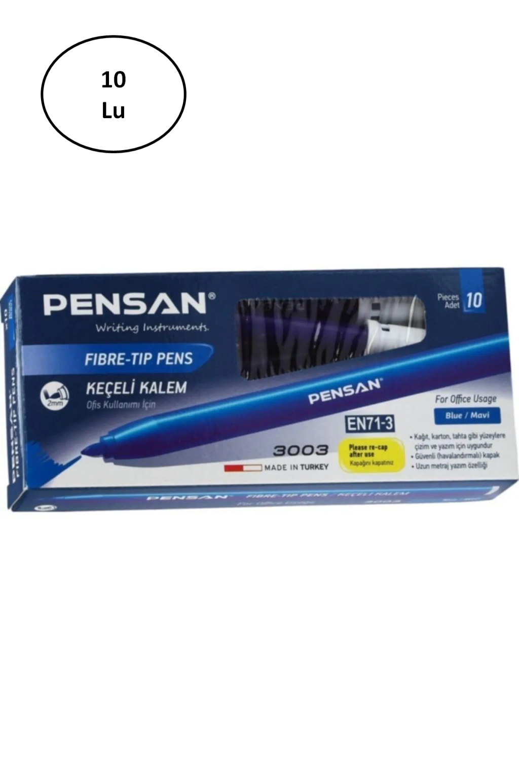 Pensan Keçeli Kalem 3003 Ofis Tipi Mavi 10'lu