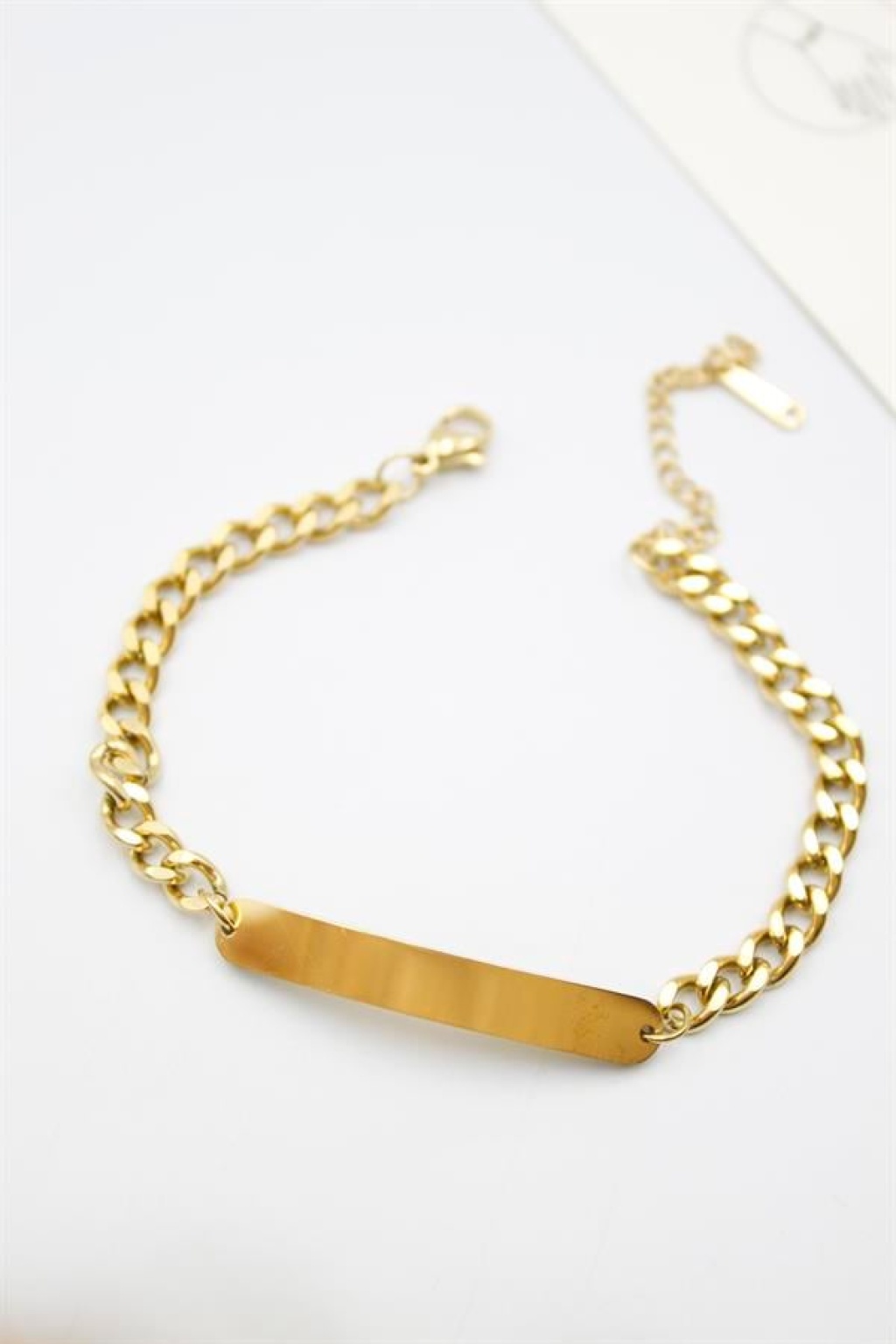 Plaka Zincir Bileklik - Altın