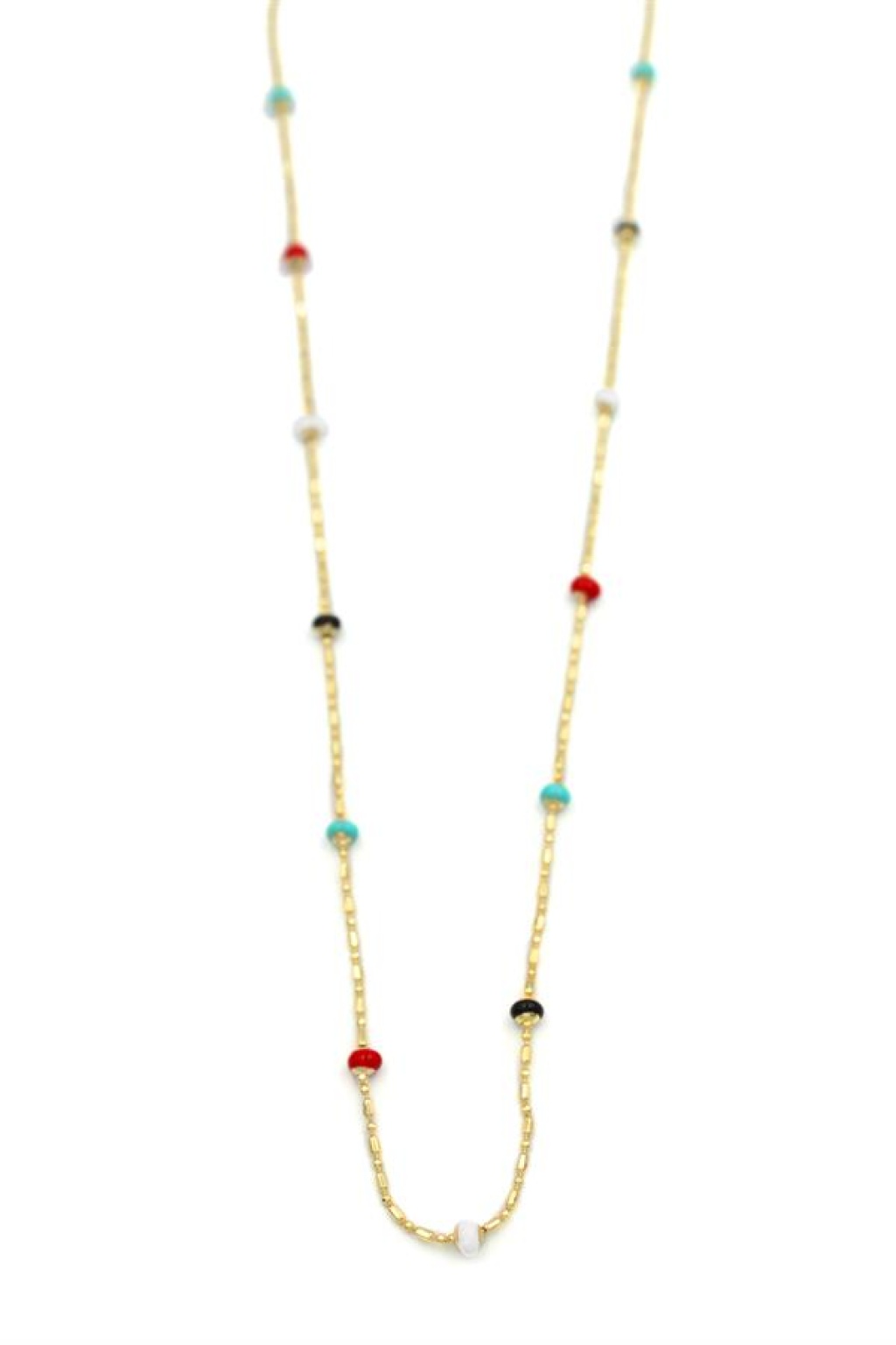 Renkli Boncuklu Zincir Kolye - Gümüş