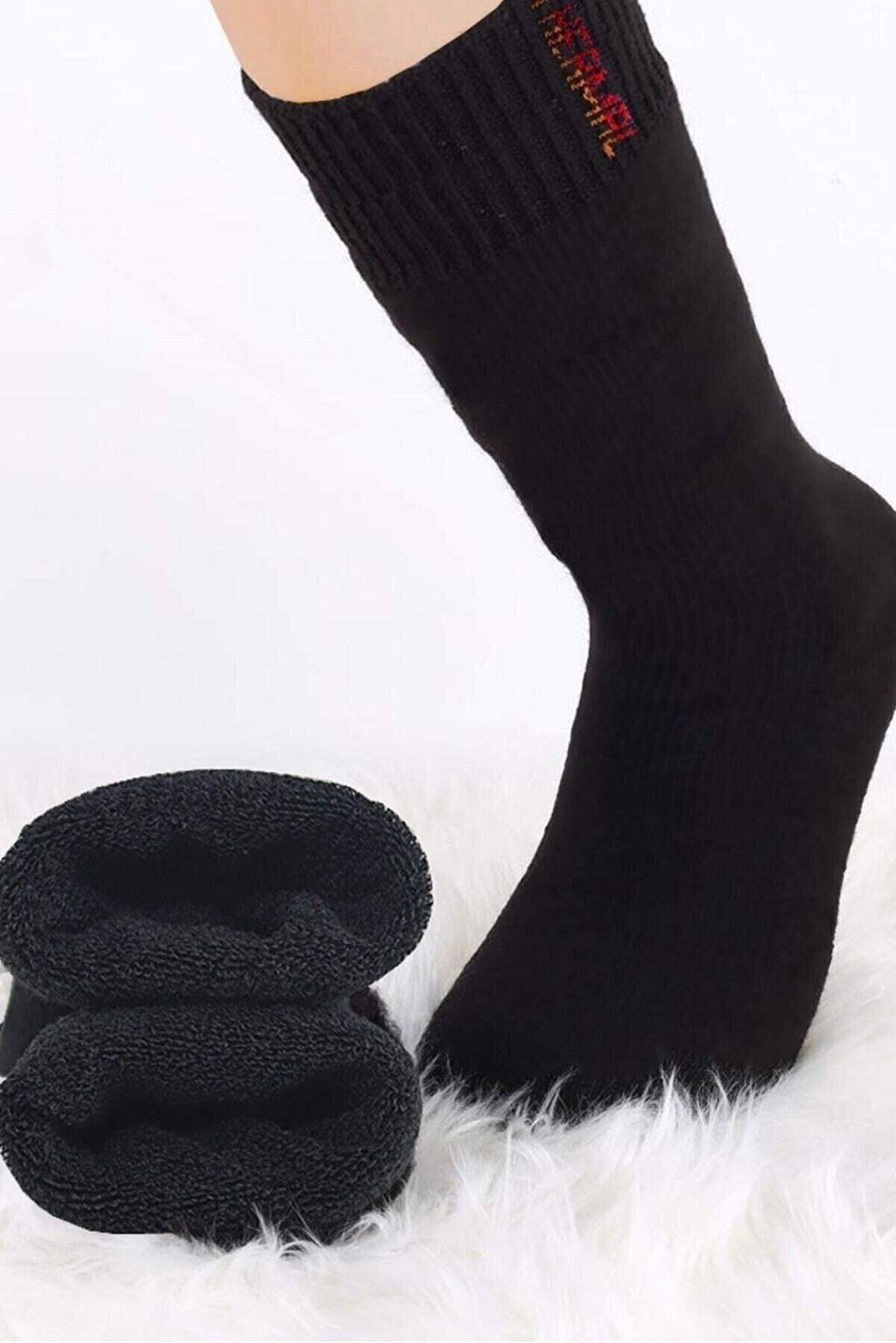 Siyah Termal Kalın Kışlık Havlu Çorap Erkek Kadın Unisex