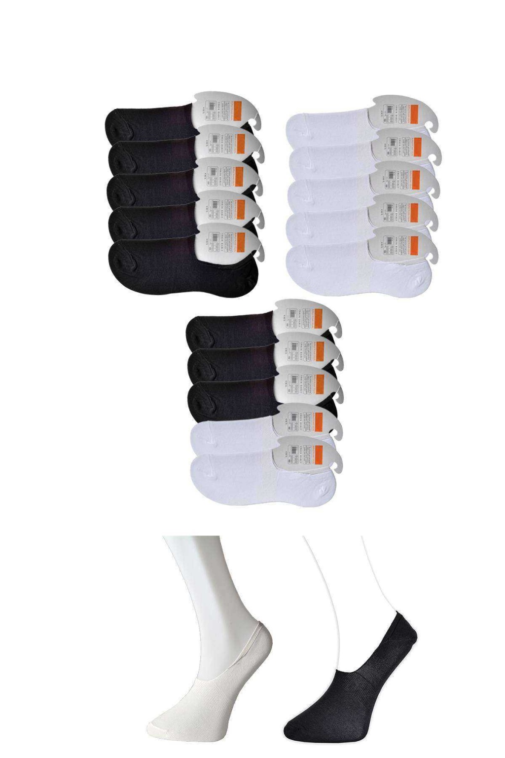 Siyah ve Beyaz Erkek Babet Çorap 15 çift