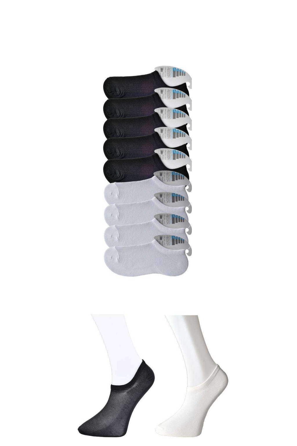 Siyah ve Beyaz Erkek Görünmez Çorap 12 çift