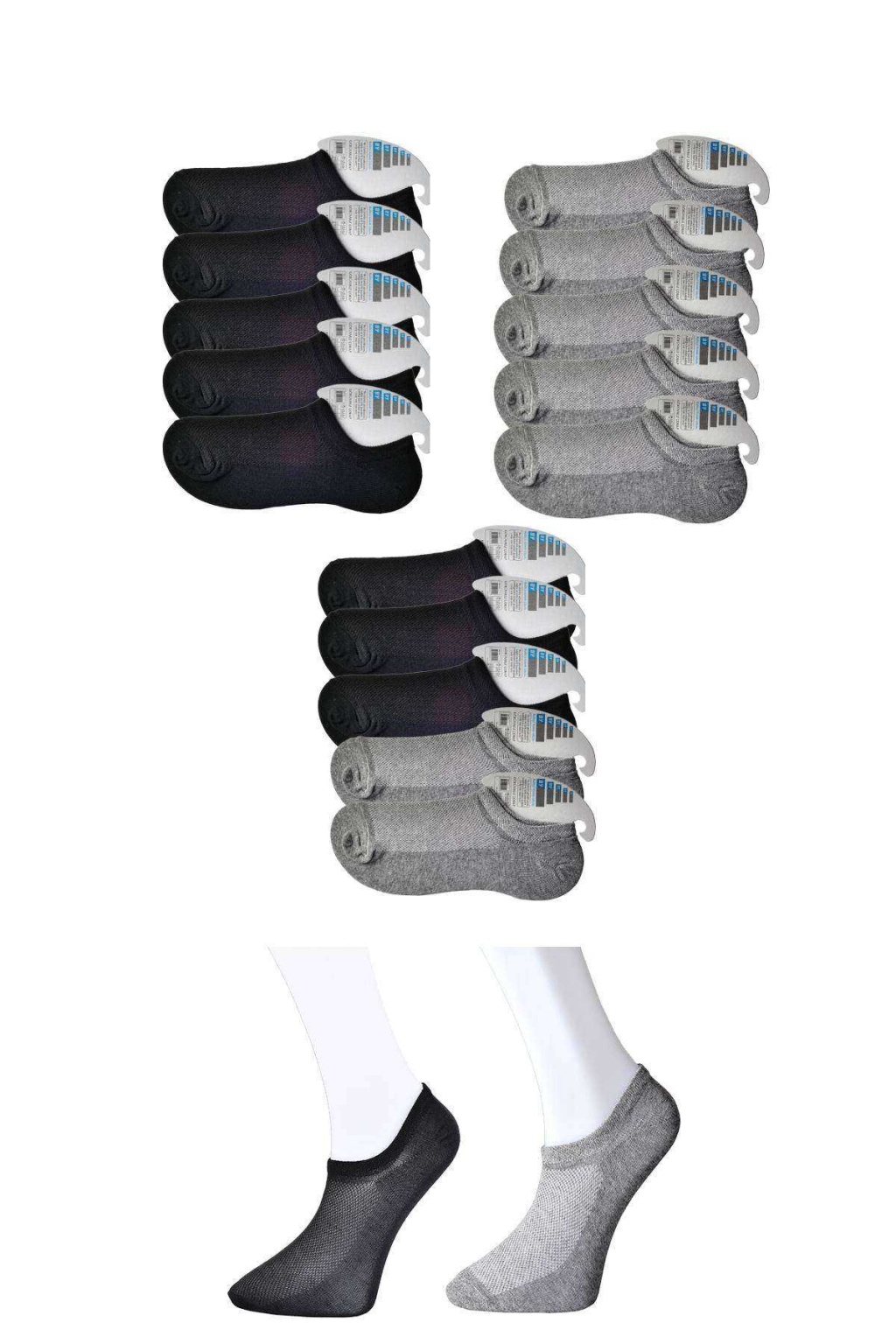 Gri ve Beyaz Erkek Görünmez Çorap 15 çift
