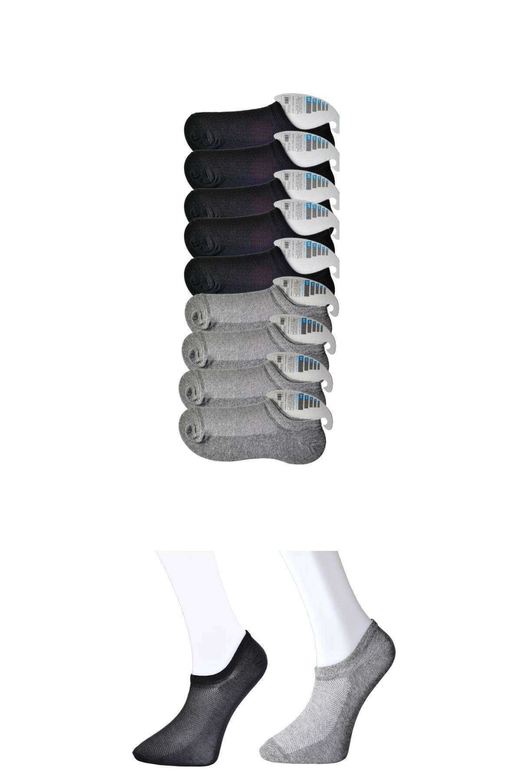Gri ve Beyaz Erkek Görünmez Çorap 12 çift
