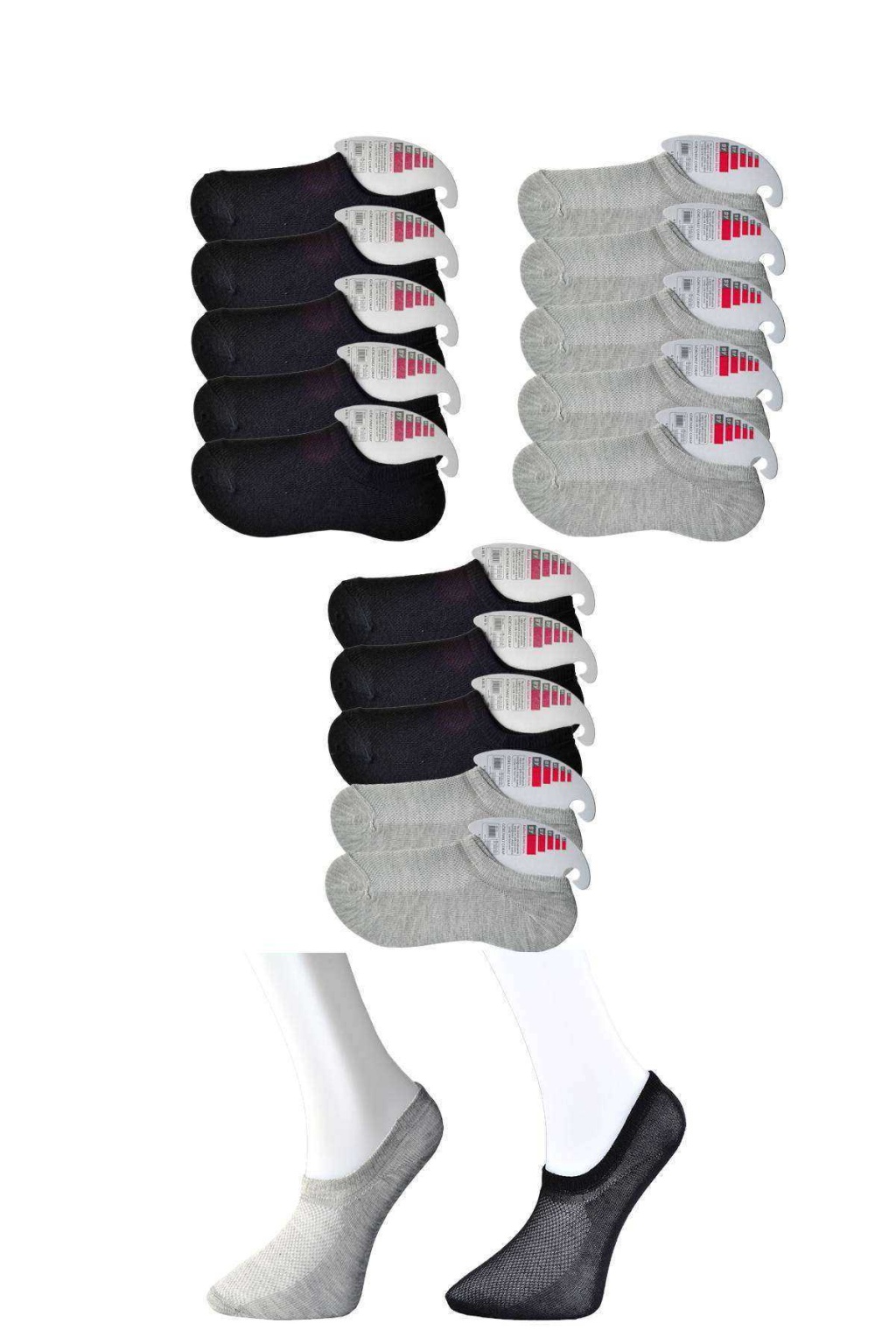Siyah ve Gri Kadın Görünmez Çorap 15 çift