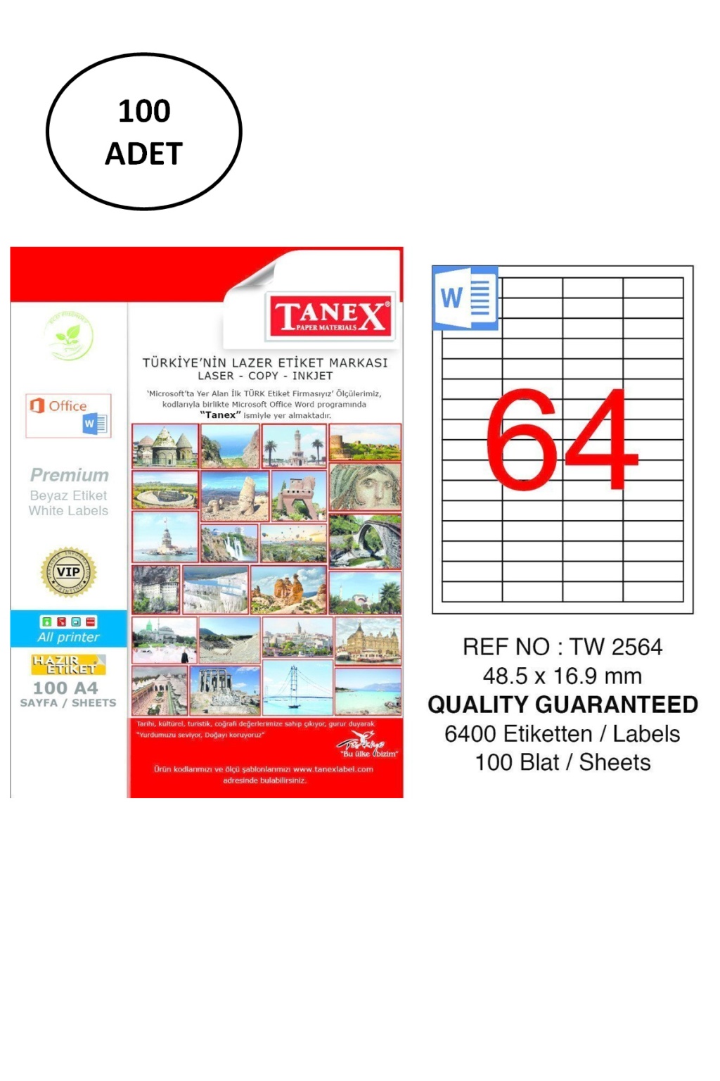 Tanex Tw-2564 Lazer Etiket 48X16 Mm 100 Adet