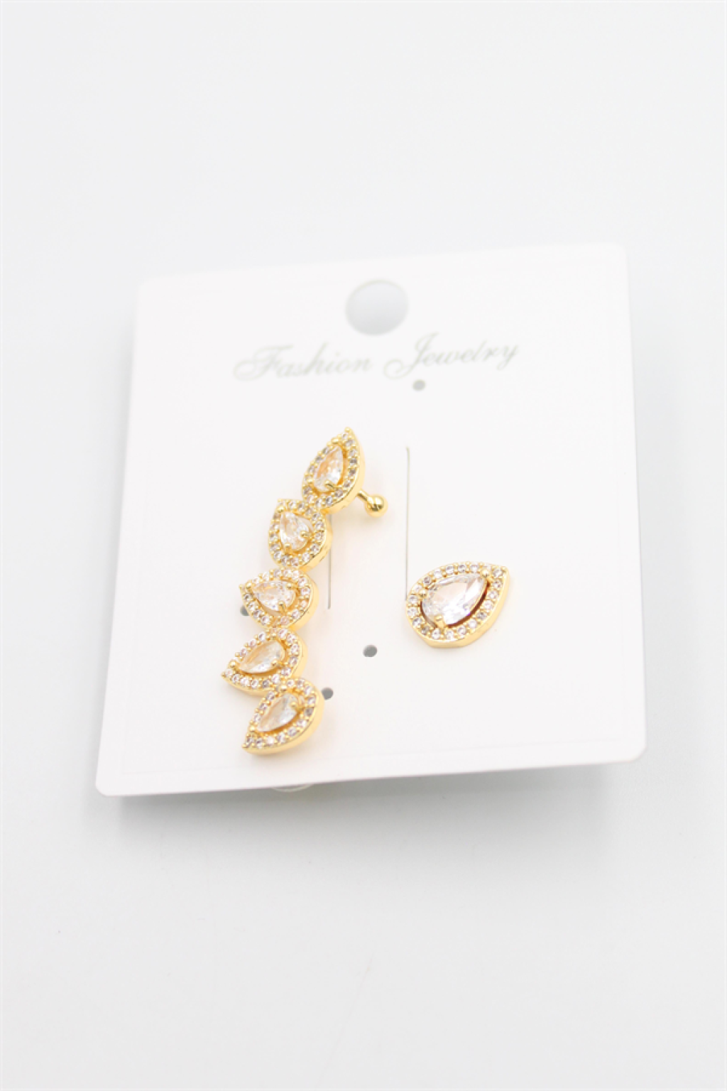 Taşlı Filkete Kıkırdak Küpe - Altın