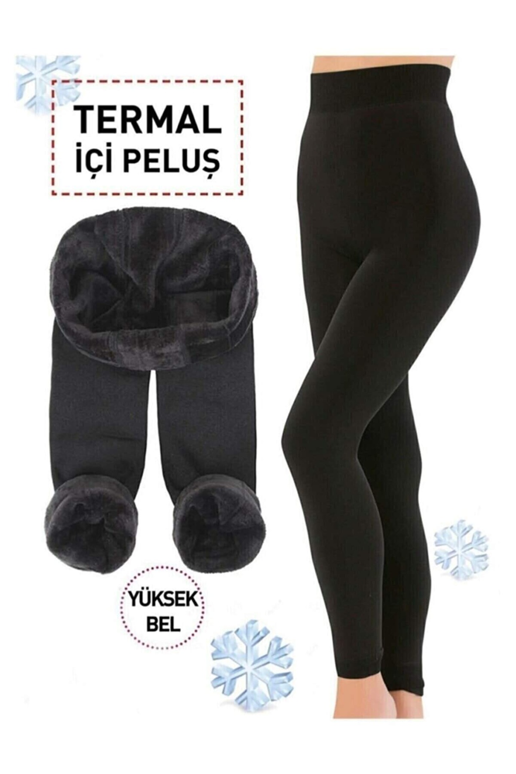 Kadın İçi Peluş Termal Dikişsiz İz yapmaz Kışlık Sıcak Tutan Peluş Tayt Siyah