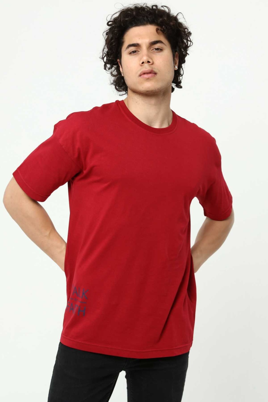 Walk By Faith Baskılı Bordo Erkek Oversize T-Shirt