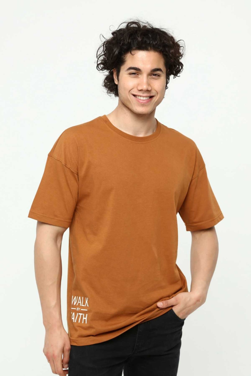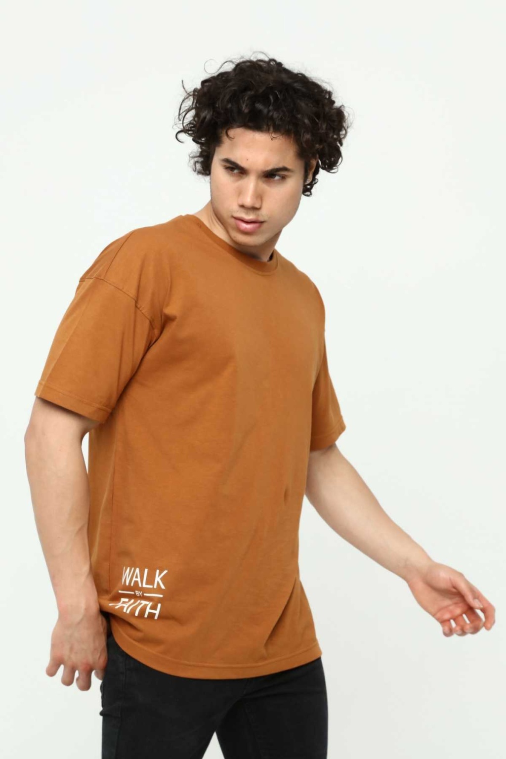Walk By Faith Baskılı Kahve Erkek Oversize T-Shirt