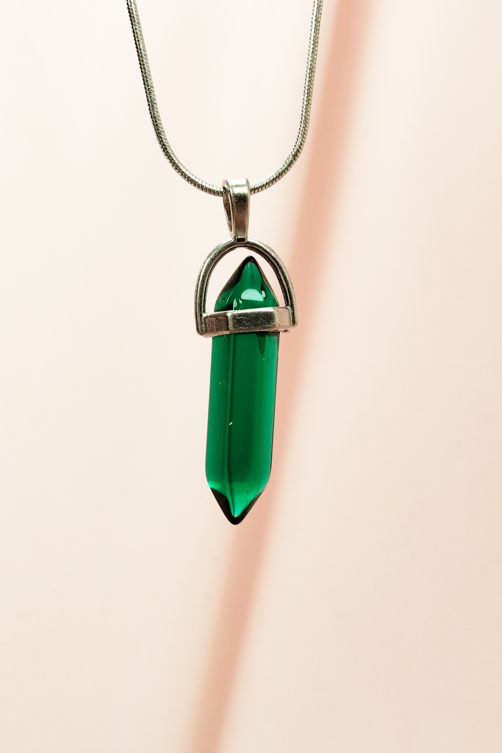 Yeşil Kuvars Doğal Taşı Zincirli El Yapımı Tasarımlı Kolye Uç: 3,5 cm Zincir: 20 cm Kutulu